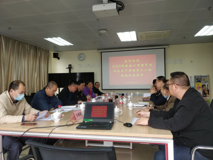 2021年2月2日,南宁市国资委安全生产工作考核组一行六人,到集团考核 2020 年安全生产目标任务完成情况。