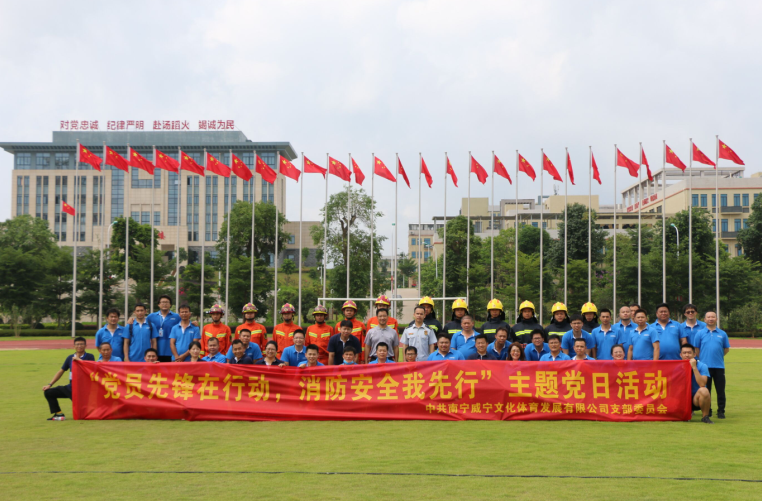 为进一步提升党员干部的消防安全意识,掌握消防基本知识和技能,发挥党员先锋模范带头作用,预防消防安全事故,2020年7月3日上午,C7(中国)文体公司党支部围绕“党员先锋在行动,消防安全我先行”主题,在广西(南宁)消防培训基地开展主题党日活动。党支部全体党员、发展对象、积极分子和职工群众共40人参加了活动。