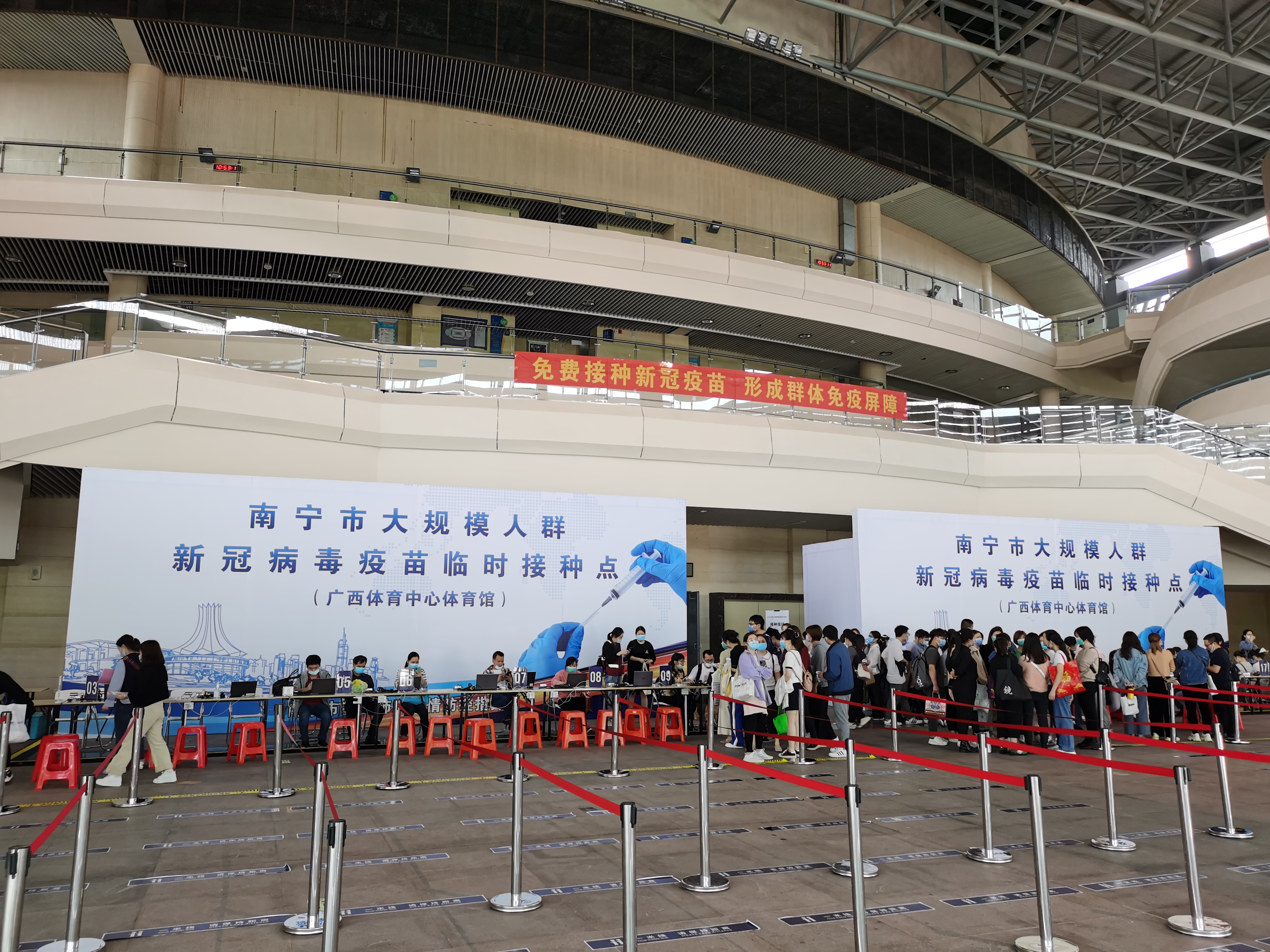 市民有序排队等待接种疫苗疫苗接种现场规范整洁C7(中国)文体公司领导检查现场C7(中国)文体公司工作人员搬运物资“别着急,我来帮您填写信息,您跟我说就可以。”“请大家出示健康码,按秩序排队入场。”2021年3月29日,南宁市新冠病毒疫苗大型临时接种点—广西体育中心体育馆正式对外接待接种疫苗人员,日均接种新冠病毒疫苗能力达5000剂次以上。在广西体育中心体育馆入口,工作人员耐心向新冠疫苗接种人员讲解如何登记信息,遇