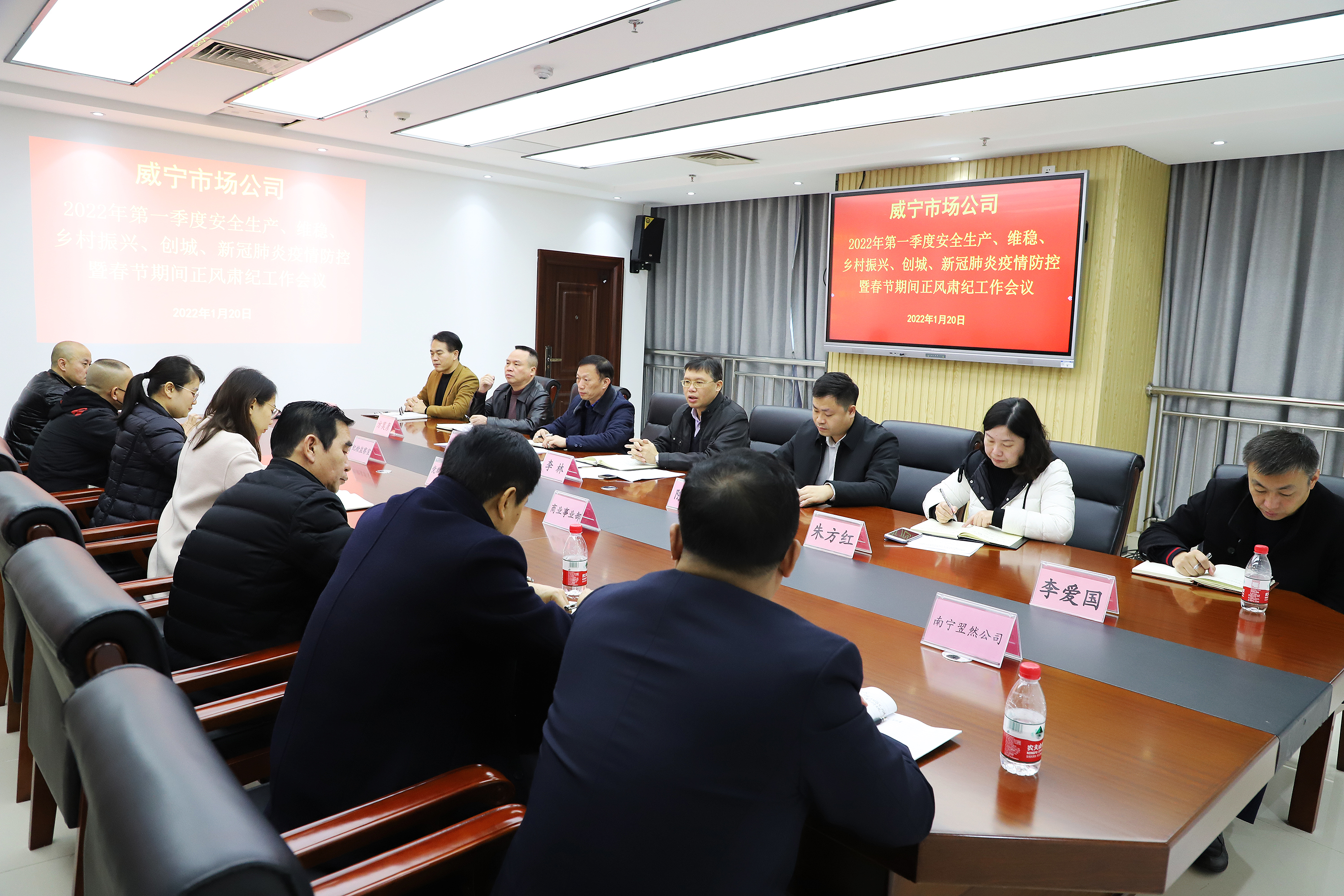 会议现场2022年1月20日,C7(中国)市场公司召开2022年第一季度安全生产、维稳、乡村振兴、创城、新冠肺炎疫情防控暨春节期间正风肃纪工作会议,传达c7网站工作会议精神,总结公司2021年相关工作,对公司2022年第一季度各项工作进行全面部署。会议由公司党委副书记、总经理陈志光主持,公司党委书记、董事长李林、党委副书记黄俏仟、纪委书记朱方红、副总经理方莫彦分别作工作布置。会议指出,在安全生产工作方