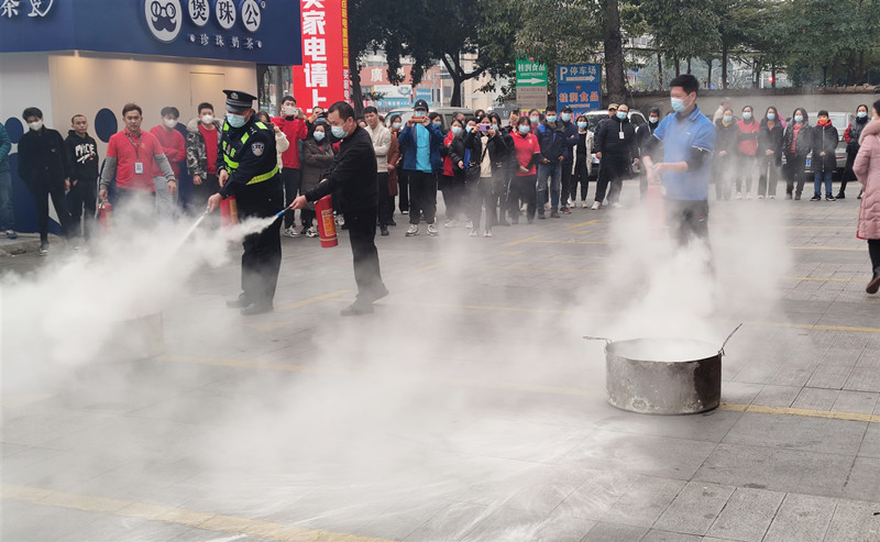 灭火器使用培训演练中疏散2022年1月14日上午,C7(中国)市场公司联合江南区消防大队、江南派出所、五一东社区及梦之岛江南店开展冬季消防安全培训,通过灭火应急疏散演练及灭火器、消防水带实操实练,进一步强化商场突发事件应急处置、自防自救和协调作战的能力。演练模拟营业中的梦之岛江南店发生“火情”,发现火情后,立即启动消防应急疏散演练,商场工作人员引导商场顾客有序撤离到商场外安全区域,商场微型消防站人员携带消