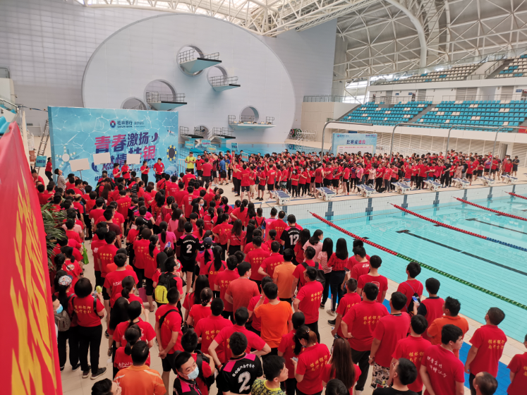 5月24日,一场运动与游戏相融、激情与趣味碰撞的水上趣味运动会在广西体育中心游泳跳水馆激情开战。来自桂林银行南宁分行的500多名职工同场竞技。