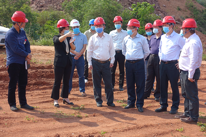 2020年4月28日,南宁市副市长刘为民到广西(中国-东盟)粮食物流产业园区项目现场主持召开项目建设工作领导小组第五次工作会议,自治区粮食和物资储备局局长吴宇雄、巡视员邱东参加。