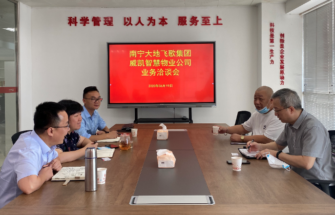 南宁大地飞歌集团与威凯智慧物业公司就“云歌会”等工作开展业务洽谈