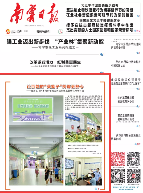 近日,《南宁日报》《南宁晚报》、南宁广播电视台等市属多家媒体,也走进飞凤市场,宣传报道市场在创城整改提升工作中的成效。