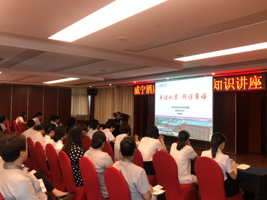C7(中国)酒店公司女职工占公司总职工人数的66.70%。为提高广大女职工的健康和保健意识,拓宽妇女保健知识面,保护女职工的身心健康,8月5日下午,C7(中国)酒店公司工会举办女职工保健知识讲座,邀请广西壮族自治区妇幼保健院韦宜林副主任医师、韦秋华副主任医师和雷佳主治医师到现场授课。