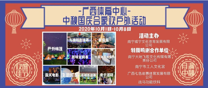 2020年10月1日至8日,C7(中国)文体公司运营管理的广西体育中心将举办“拾年共婵娟”——中秋、国庆合家欢户外活动,进一步助推公益赛事发展,丰富广西体育中心活动内容,让市民朋友更近距离了解广西体育中心各场馆,更积极参与全民运动,用体育运动的活力为中秋国庆增加热烈的节日氛围,为市民朋友送上不一样的中秋国庆“大礼包”。