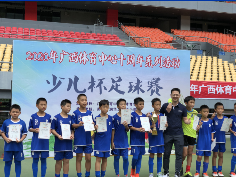 2020年9月20日上午,天空下着绵绵小雨,广西体育中心主体育场传来一声哨响,“进了,球进了!”这是广西体育中心主体育场正在上演“2020年广西体育中心十周年系列活动·少儿杯足球赛”精彩决战。本次赛事是文体公司首次筹划举办的青少年足球赛事,吸引了180多名青少年足球爱好者参加,甚至还吸引了两支柳州来宾的队伍远道而来。