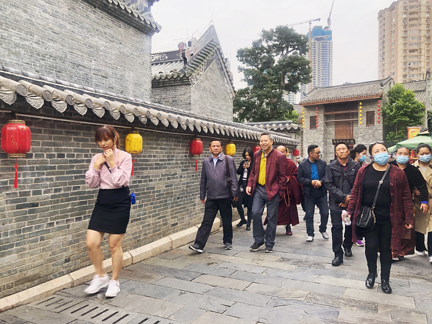 边巴(左三)一行在三街两巷内走访参观近日,西藏自治区日喀则政协党组成员、副主席边巴一行17人来到“老南宁·三街两巷”历史文化街区,就南宁市生态环境保护和文化旅游发展方面的工作经验开展调研活动。边巴一行参观了中华大戏院、银狮巷、邓颖超纪念馆、南宁城隍庙、金狮巷民居群、漓江书院、南宁市瓯骆汉风陶瓷博物馆、仓西门巷等景观景点和文化场馆。调研组对民国风情街等重点片区和街区景观品质给予了肯定,并表示街区内的