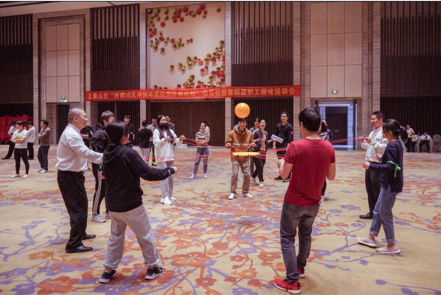 为进一步丰富员工业余文化生活,展现良好向上的精神风貌,激发团结进取的拼搏精神,营造健康和谐的工作氛围, 11月13日,五象山庄举办了“拼搏50天冲刺年度经营目标达标”动员会暨第四届职工趣味运动会。