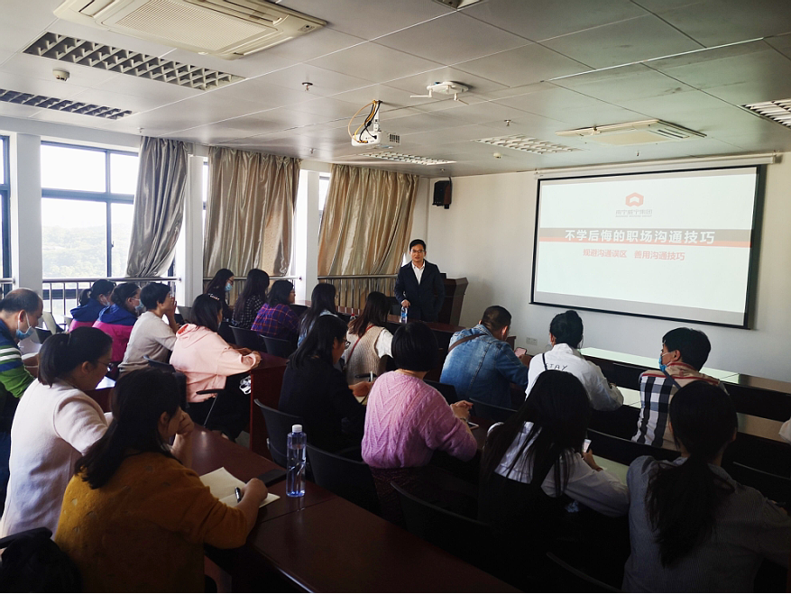 培训现场为提高员工职场沟通技巧,营造良好的沟通文化和氛围,10月23日下午,集团人力资源部组织了题为《不学后悔的职场沟通技巧》的小课堂培训,邀请到集团内训师-威沃教育公司副总经理林国城现场授课,来自集团本部及各监管单位共计40名员工参加培训。林老师带着内训师“师课共建”课程研发成果而来,从学员提出需要解决日常工作和生活中关于沟通的相关问题切入,细分职场中不同的沟通场景,围绕日常工作生活、微信社交中