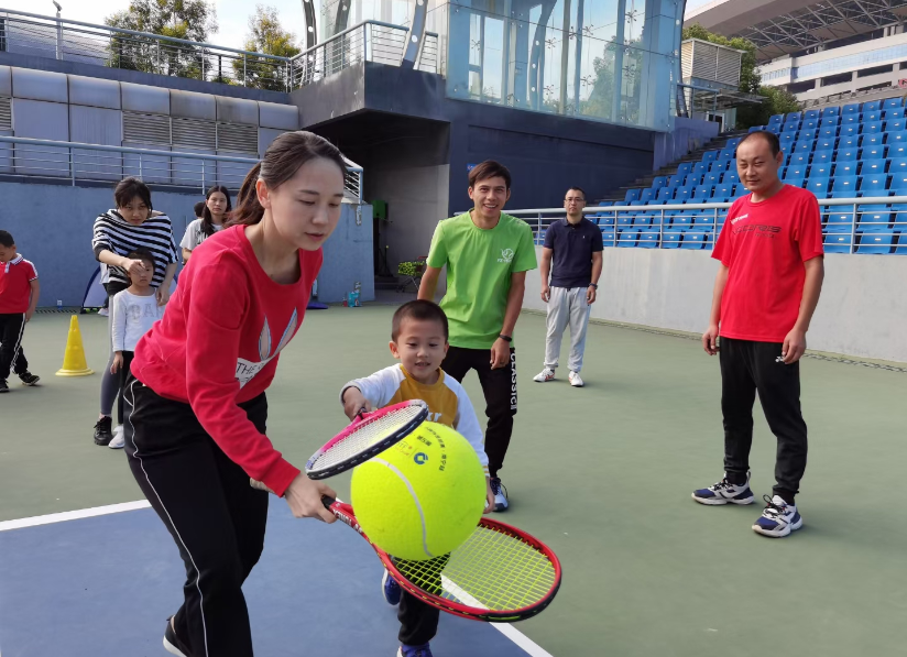 近日, 广西体育中心举行公益性网球亲子趣味赛,吸引了不少家庭参赛。