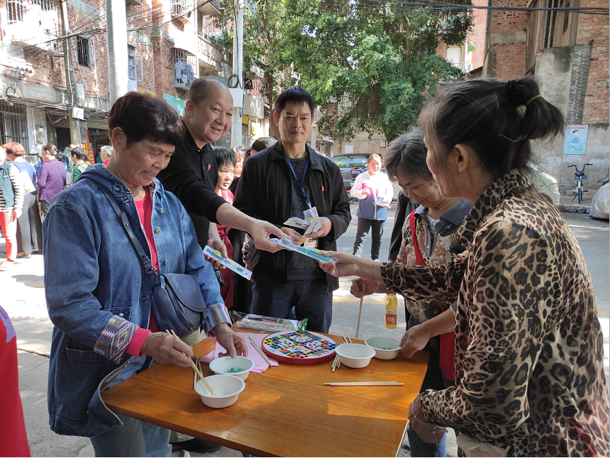 活动现场秋风送爽,情暖重阳。2020年10月23日,C7(中国)市场公司商业事业部党总支联合永宁社区党总支开展“孝老爱亲,温情重阳”主题活动,为社区退休老同志送上最真挚的节日祝福。活动现场,来自C7(中国)市场公司和永宁社区的党员志愿者们为社区退休老同志们精心准备了趣味横生的游园活动。抛圈、接乒乓球、夹玻珠……老少咸宜的小游戏轮番进行,现场掌声、喝彩声此起彼伏。同时,在游园小游戏中穿插的全国文明城市创建、垃圾分类
