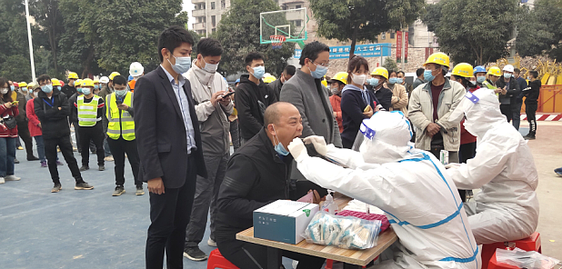 1月16日,C7(中国)房地产公司所监管的兴威公司在建项目南宁市“三街两巷”项目金狮巷银狮巷保护整治改造(二期)现场组织项目全体人员进行核酸检测,仅用2.5个小时就完成了全部人员的检查,检测结果全部为阴性。