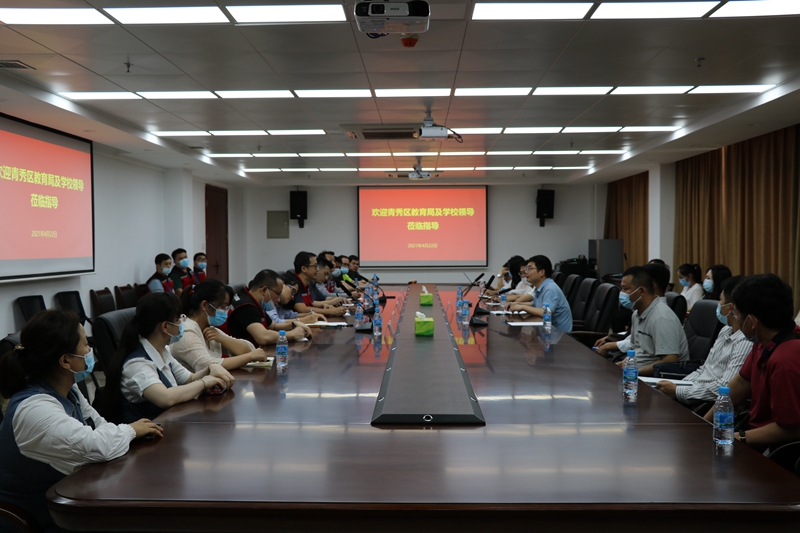 图 座谈会现场图 学校代表听取介绍为持续打造“全产业链运营、全过程检测溯源、多角度立体化监督、阳光规范化操作”的食材集采集配体系,2021年4月23至24日下午,威耀供应链公司邀请青秀区45所公办学校教师代表约100人,分两批参观五象配送基地,并开展座谈交流。参观过程中,威耀供应链公司向青秀区教育局及学校代表介绍了项目运营意义、食材验收标准、食材检测流程及公司运行实际等情况,并演示了日常作业流程及