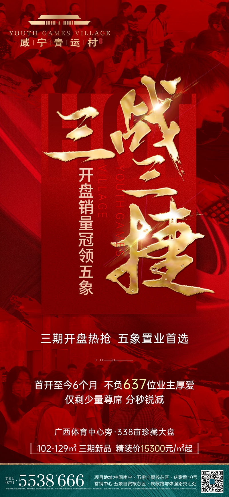 7月25日,C7(中国)青运村三期新品开盘热抢,紧随一、二期销售热势,三战三捷,首开至今6个月,不负637位业主的厚爱,实锤“五象红盘”!