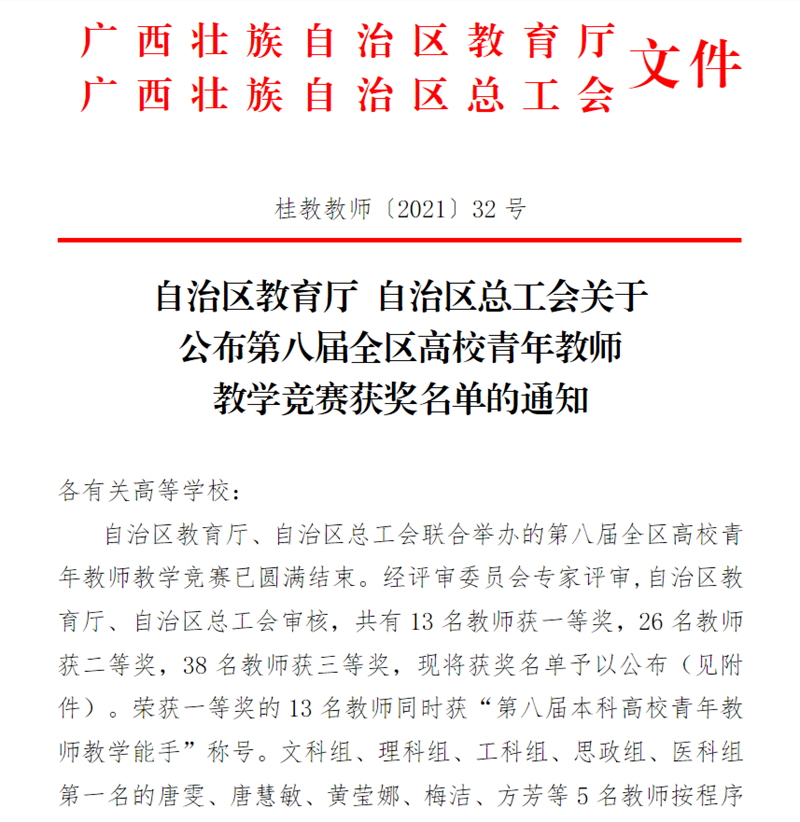 近日,第八届全区高校青年教师教学竞赛结果揭晓,南宁学院4名教师获佳绩。