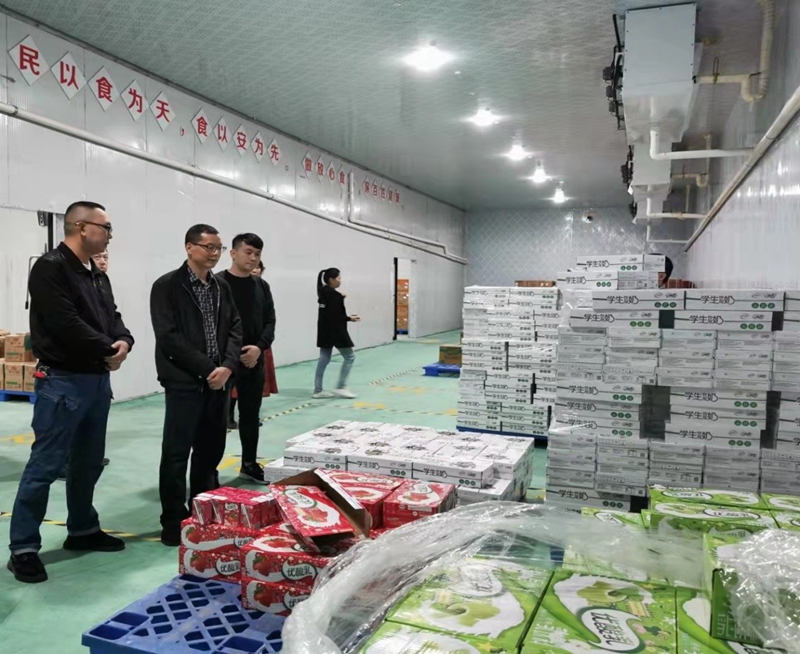 10月19日上午,c7网站副总经理滕振旗、黎镇宇率队到威耀供应链公司隆安分公司检查学校食材集采集配工作开展情况。