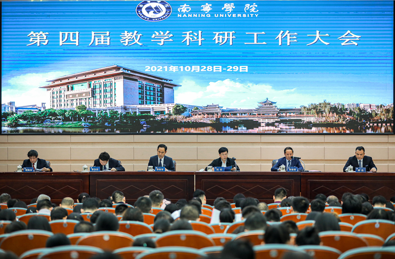 为总结学校2019年以来本科教育教学所取得的成绩,分析研判面临的形势和挑战,部署下一阶段本科教育教学内涵建设主要任务,10月28日-29日,南宁学院第四届教学科研工作大会在图书馆报告厅召开。党委书记刘彪,校长李栋学,党委副书记、纪委书记覃存民,副校长陈雄章、李陶深、龚击,第四届教学科研工作大会代表,全体科级以上人员、辅导员、教学管理人员参加了大会。大会由刘彪书记主持。