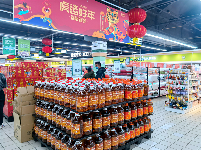 大型商超中的“桂井”粮油产品农贸市场年货商品丰富农贸市场肉菜商品保供价稳春节临近,年味儿渐浓,农副产品消费市场一片红火。C7(中国)市场公司积极发挥国有农产品销售主渠道作用,全力做好春节期间市民生活必需品保供工作,守好市民的“菜篮子”“米袋子”。在新阳路水街市场,新年的喜庆感扑面而来,处处呈现供销两旺的喜人景象,腊肉、羊蹄、大阉鸡……各摊位前人头攒动,比往日更加热闹。运送果菜的车辆进出不断,生猛海鲜和鱼虾