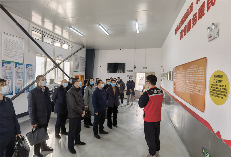 实地参观基地生鲜库现场调研信息化系统2022年1月11日下午,贵港市人民政府副秘书长覃华宁一行11人到威耀供应链公司五象配送基地实地调研学校食材集采集配项目,南宁C7(中国)投资集团有限责任公司副总经理滕振旗陪同调研。覃华宁一行实地参观了五象配送基地的生鲜库及冷链车场,对场地投资建设,食材的检验检测、入库、储存、出库、分拣、配送、信息化系统、车辆监控等各个环节进行全方位的了解,并对于威耀供应链公司始终秉承