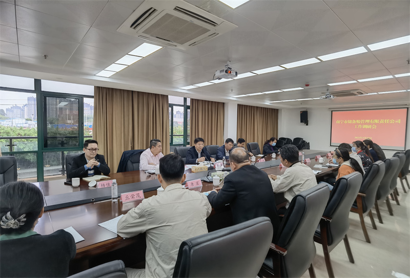 2022年3月10日上午,农发行广西区分行粮棉油与产业客户处处长韦敏率队到粮食园区公司洽谈园区项目物流中心工程建设融资合作事宜
