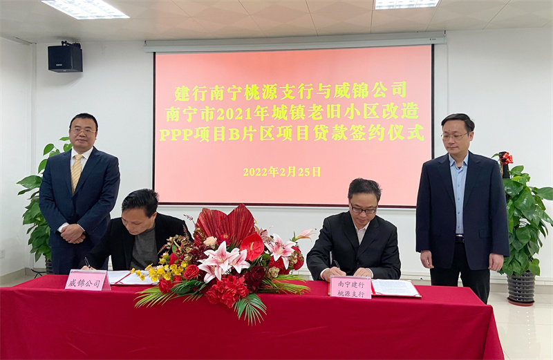 2022年2月25日,南宁市2021年城镇老旧小区改造PPP项目B片区项目获中国建设银行南宁桃源支行授信1.47亿元,用于保障项目建设。