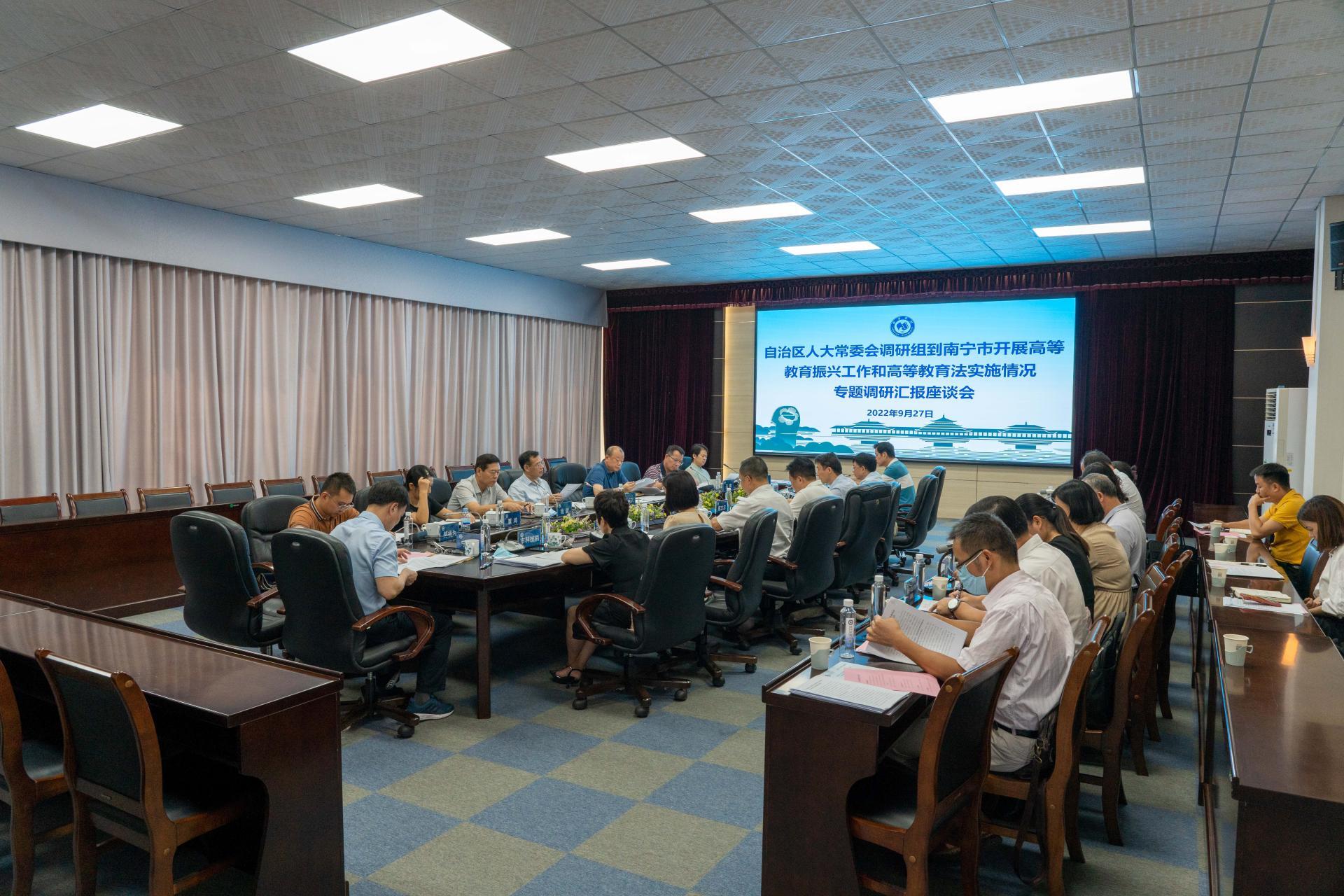 自治区人大常委会专题调研南宁市开展高等教育振兴工作和高等教育法实施情况座谈会在学校召开