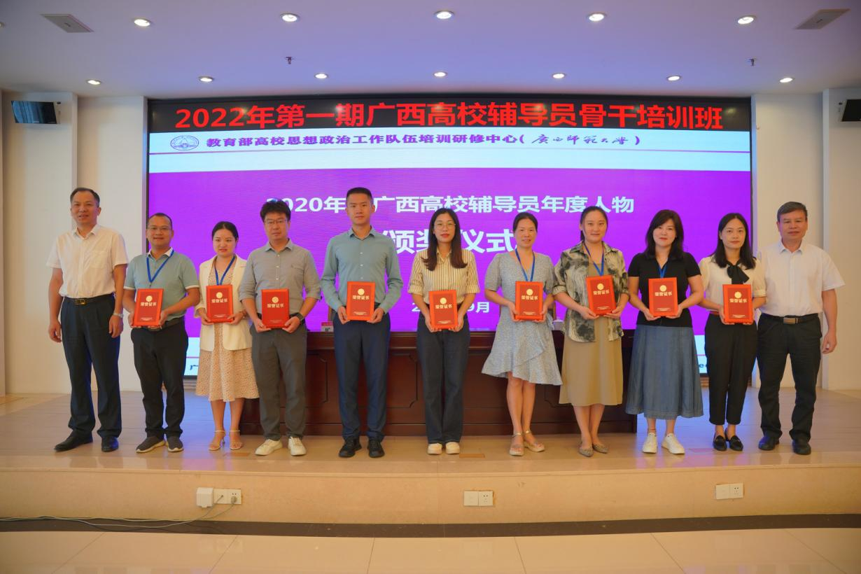 9月28日上午,2020年度广西高校辅导员年度人物颁奖仪式在桂林举行。自治区教育厅二级巡视员、思政处处长、教育工委宣传部部长赵益真,广西师范大学党委副书记旷永青出席活动。颁奖仪式由广西师范大学学生工作部(处)部(处)长李宇杰主持。学校邓斌老师荣获2020年度广西高校辅导员年度人物称号。他始终秉承“围绕学生、关照学生、服务学生”的工作理念,立足本职,实干担当,坚持用奉献诠释育人初心、用实干践行育人...