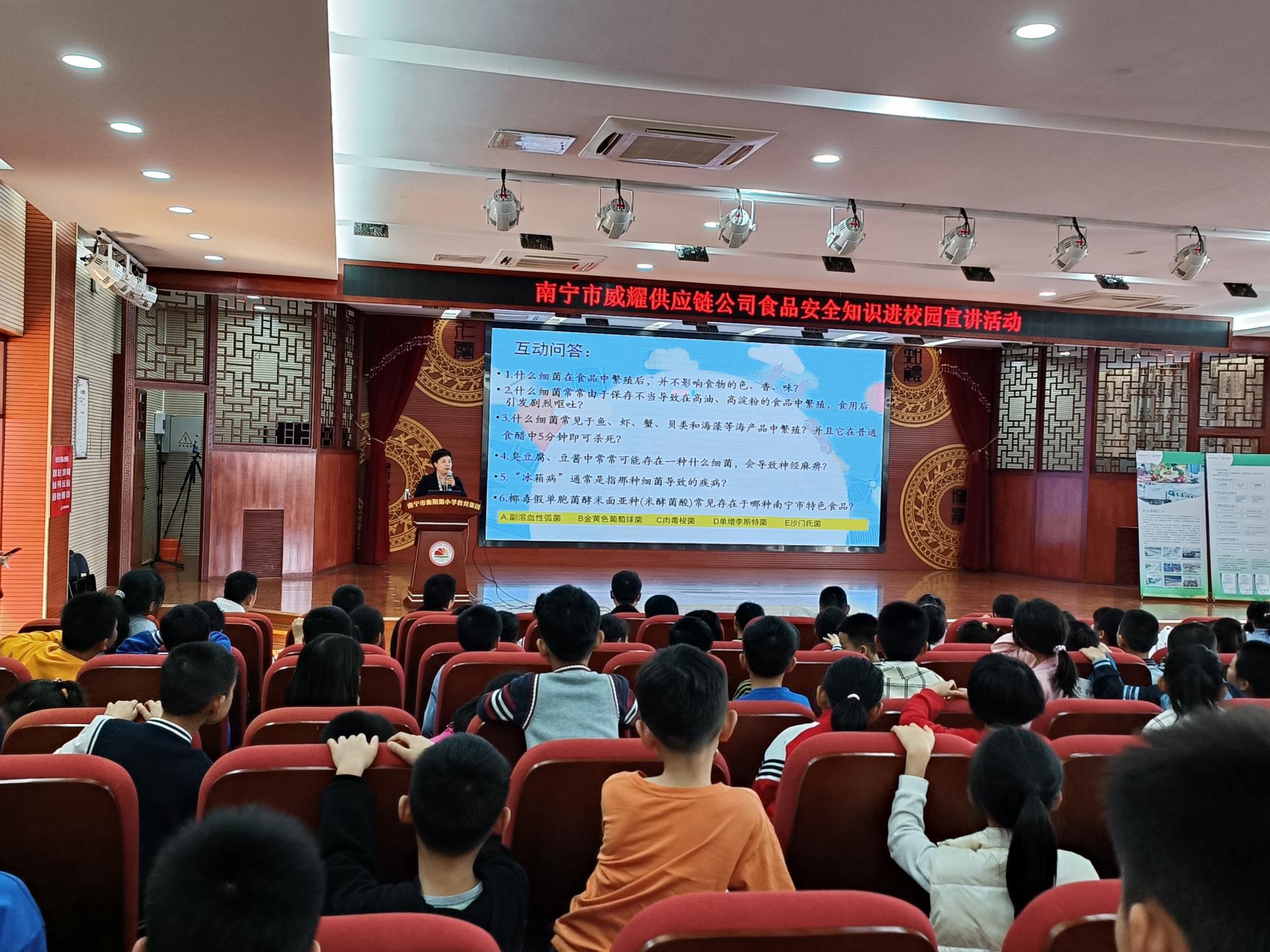 “发芽的土豆不能吃。”“亚硝酸盐会引发中毒现象。”......在同学们积极的回答问题声中,3月2日,由威耀供应链公司牵头,会同在库优质供应商组织开展的“食品安全宣讲”进校园系列活动首站在南宁市衡阳路小学(五象校区)成功开讲。南宁市衡阳路小学(五象校区)是本次系列活动的第一站,本站主讲老师是南宁市疾控中心营养学专家、国家注册营养师、国家二级健康管理师张静。张静通过如...