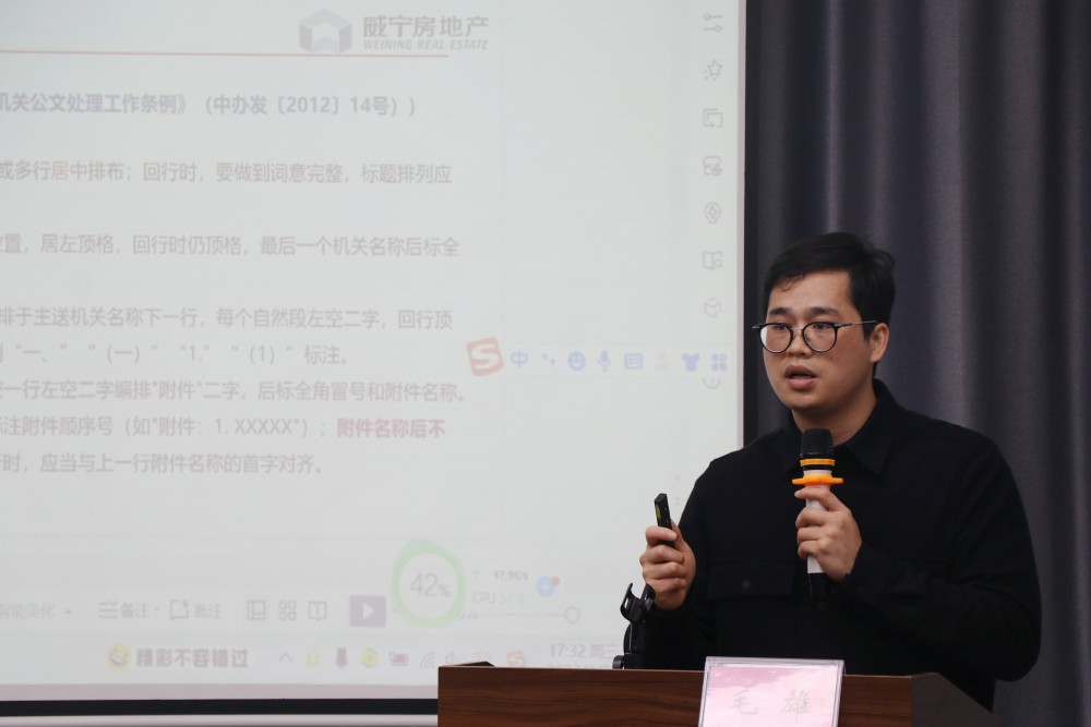 4月6日下午,C7(中国)房地产公司所属监管单位地产业公司成本部刘藜君早早来到17楼会议室,在这里即将开展一场由基层员工根据自身岗位特点,结合各部门需求开展的业务培训。今天的课程由她主讲,主要关注成本管理的知识,这方面业务与同事日常工作有交集,所以吸引了许多感兴趣的同事前来聆听。由基层员工自己说的业务课程,已经在公司持续了一个月的时间,这个培训有一个响亮的名字——“威匠说”。由于培训内容实、干货多,线上...