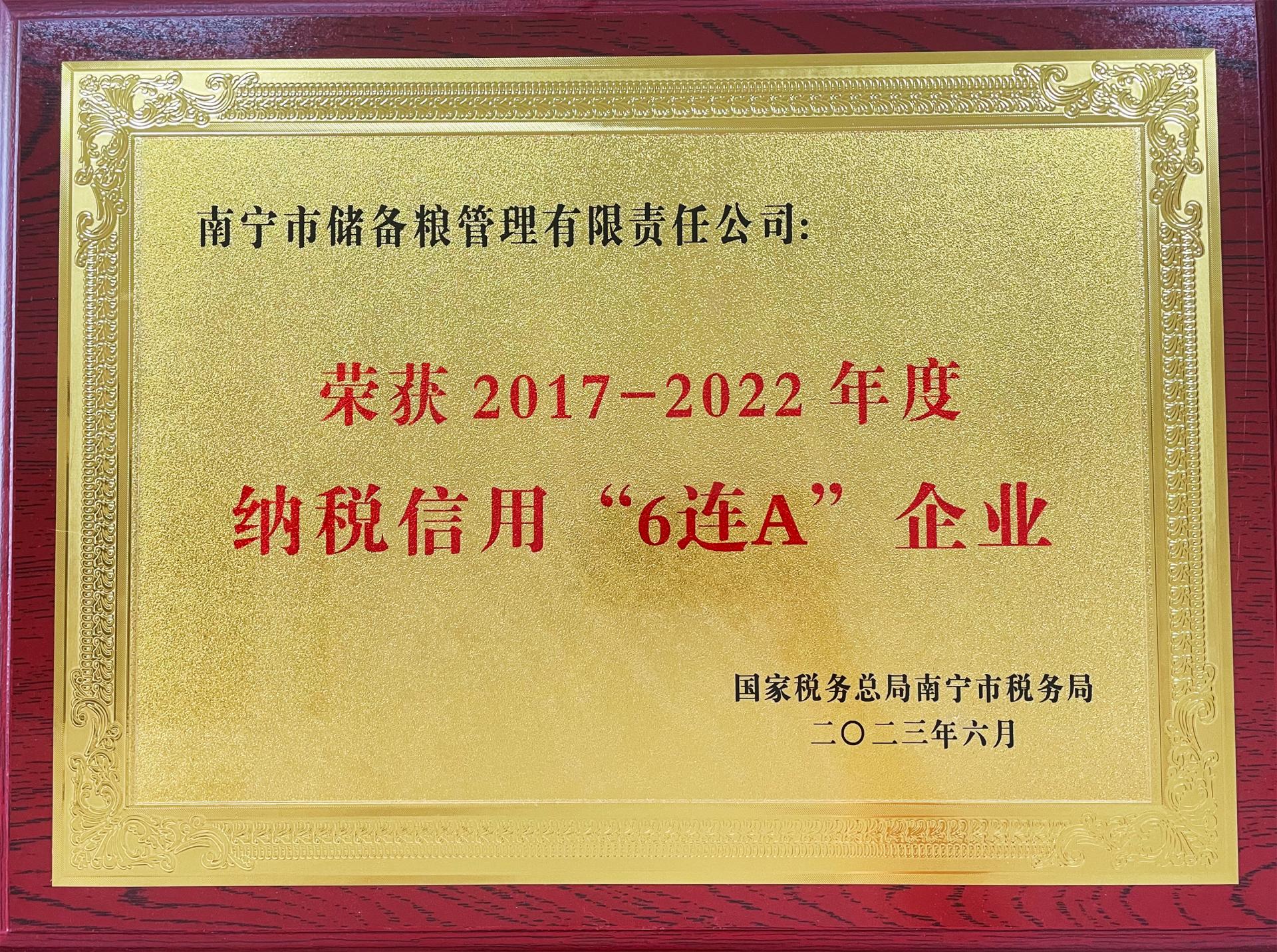 喜讯!储备粮公司连续6年荣获纳税信用“A级”企业称号