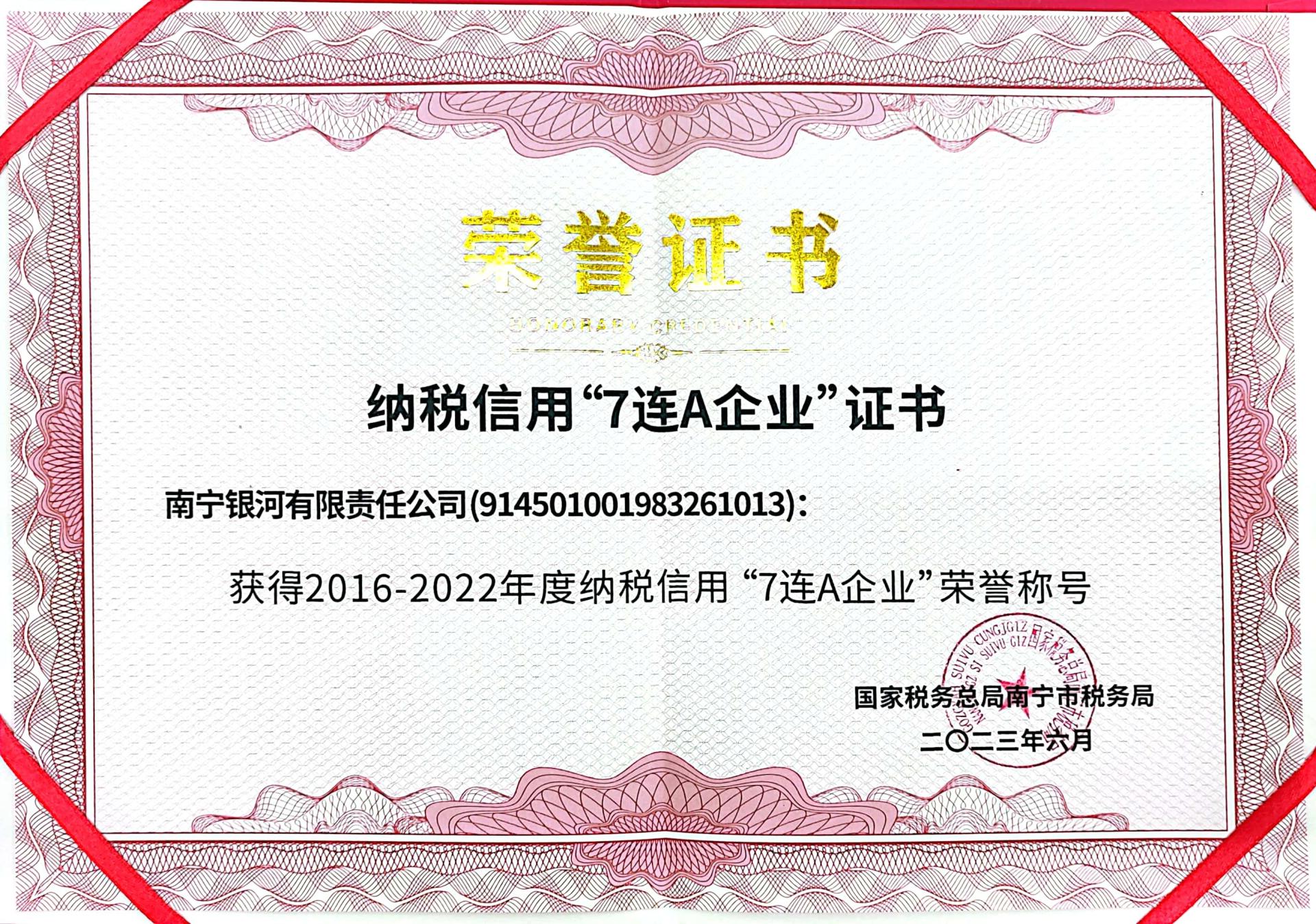 C7(中国)资产经营集团荣获纳税信用“3连A”企业荣誉