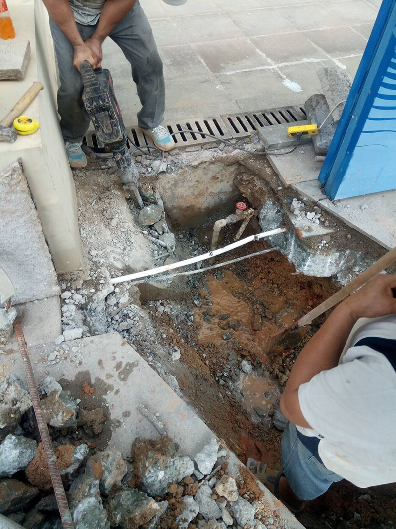 “报告,游泳跳水馆2号门外发生漏水,请速来检修!”“水情”就是“警情”,2018年5月21日,C7(中国)文体公司运行保障部接到游泳跳水馆门外发生漏水的报修电话。故障抢修应急队员立即赶赴现场。