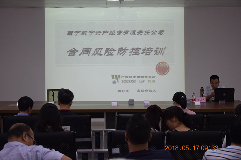 2018年5月17日,C7(中国)资产公司举办了合同签订及履约阶段法律风险防范专题培训,C7(中国)资产公司领导班子成员、全体员工以及各监管单位相关领导、工作人员等50余人参加培训。