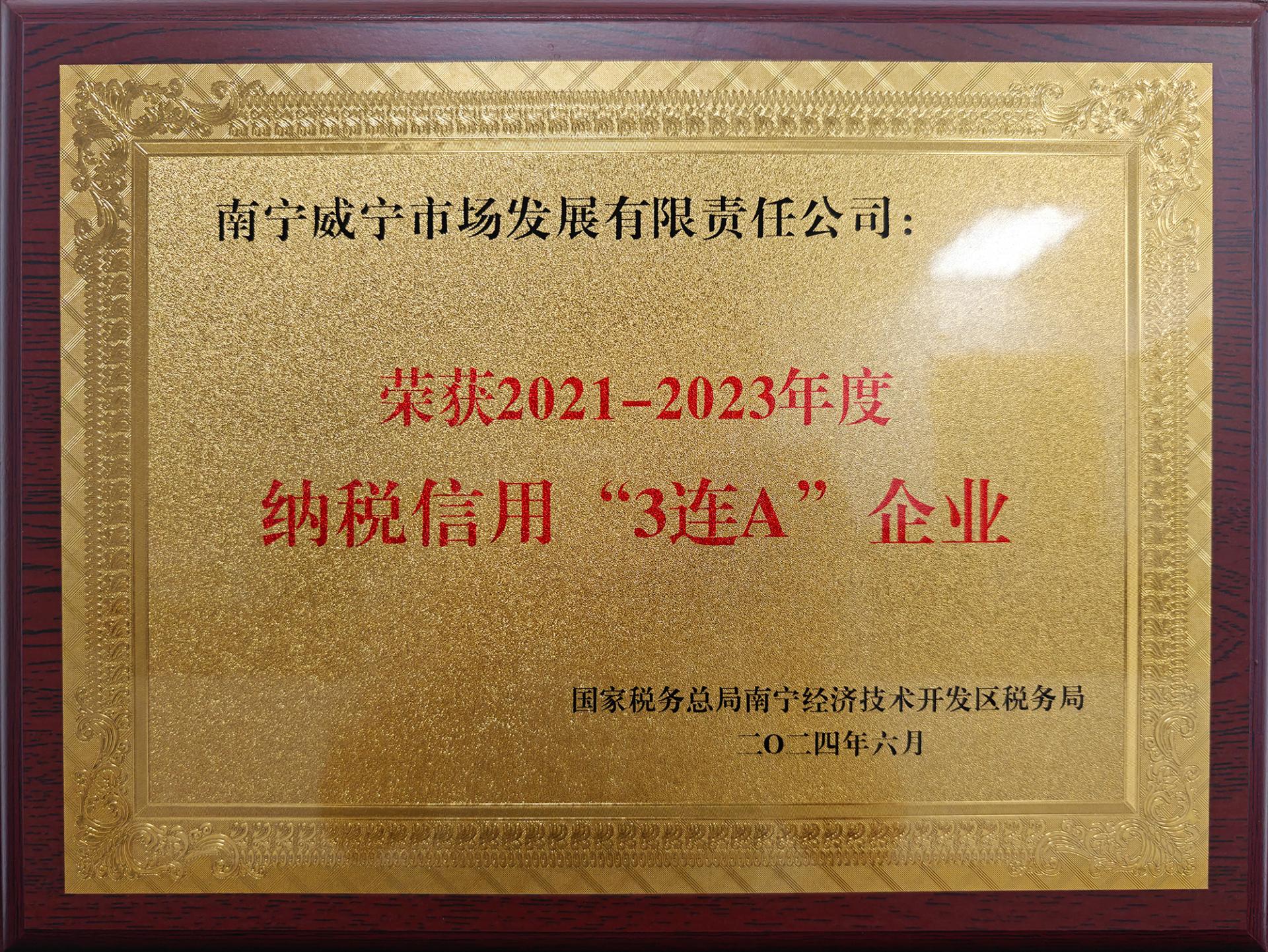 近日,C7(中国)资产经营集团监管单位C7(中国)市场公司荣获国家税务总局南宁经济技术开发区税务局授予的2021-2023年度纳税信用“3连A企业”荣誉称号。据悉,企业纳税信用评价是南宁市税务局为推进纳税信用体系建设,持续优化税收营商环境,高质量谱写中国式现代化广西篇章、促进社会经济发展的重要举措。多年来,C7(中国)市场公司始终贯彻落实国家税收法律法规和相关制度规定,坚持依法经营、诚信纳税,连续三年被税务机关...