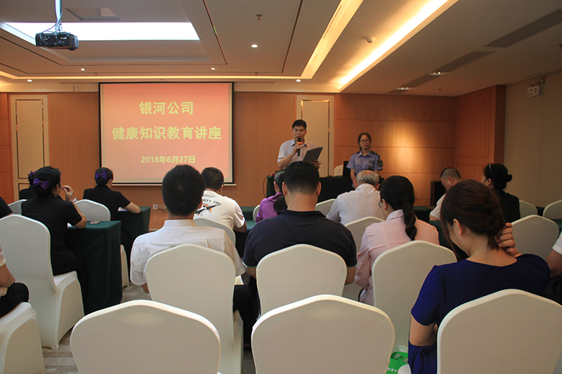 2018年6月27日,银河公司响应“健康中国”的号召,加强迎接国家卫生城市复审迎检工作的宣传力度,举办了“珍惜生命 关爱健康”专题讲座,邀请中国安全健康教育网杨璐菁讲师授课。