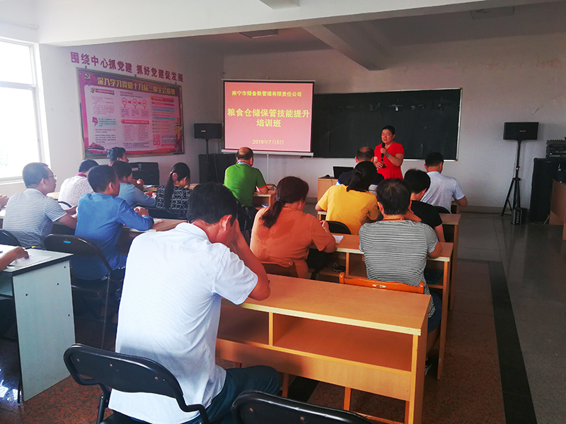 2018年7月5日,储备粮公司举办粮食仓储保管技能提升培训班,邀请广西工商职业技术学院继续教育部谭波教授讲课。