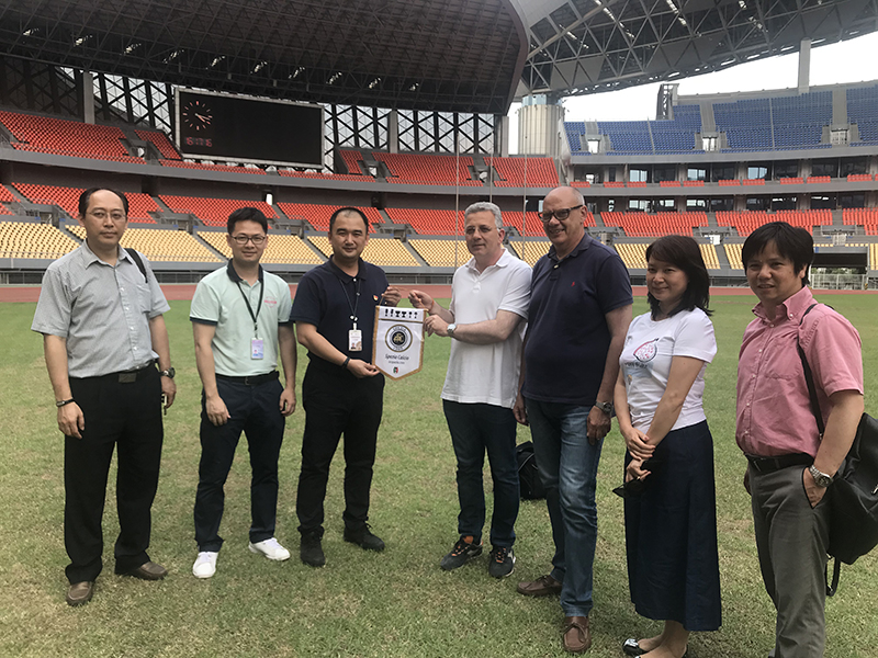 2018年6月9日,意大利拉斯佩齐亚市市长裴路易吉·贝拉基尼先生率代表团一行在南宁市外侨办的陪同下到广西体育中心参观考察。