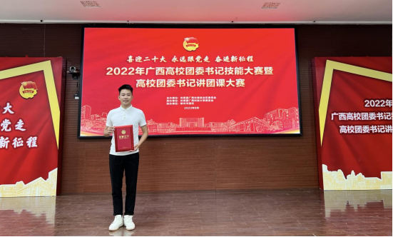 9月29日,2022年广西高校团委书记技能大赛暨高校团委书记讲团课大赛在柳州市团校顺利举行。校团委副书记尤兆智老师代表学校参加本次大赛,并在大赛中以排名第四的好成绩荣获大赛“二等奖”。本次大赛分为本科组、高职高专组2个类别,参赛选手结合自身实际,围绕习近平新时代中国特色社会主义思想、社会主义核心价值观教育、中国共产党史、新中国史、改革开放史、社会主义发展史、团章、团史、团务知识和共青团工作等...
