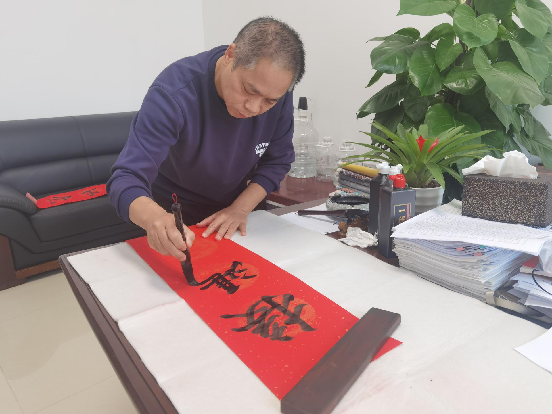 临近新春佳节,为弘扬中华传统文化,营造喜庆祥和的节日氛围,1月13日下午,集团公司机关工会开展的“威暖宁心”送春联活动在C7(中国)总部大厦18楼举行,由集团纪委书记韦登香、机关党总支李爱金2名同志,提前数日将70多副对联和福字书写完成,把浓浓的年味儿和新春祝福送给广大职工会员,满足广大职工群众的节庆文化需求。在书写活动中,洒金红纸铺案头,韦登香、李爱金2位优秀书法爱好者挥毫泼墨,落笔行云流水、笔走龙蛇,楷书...