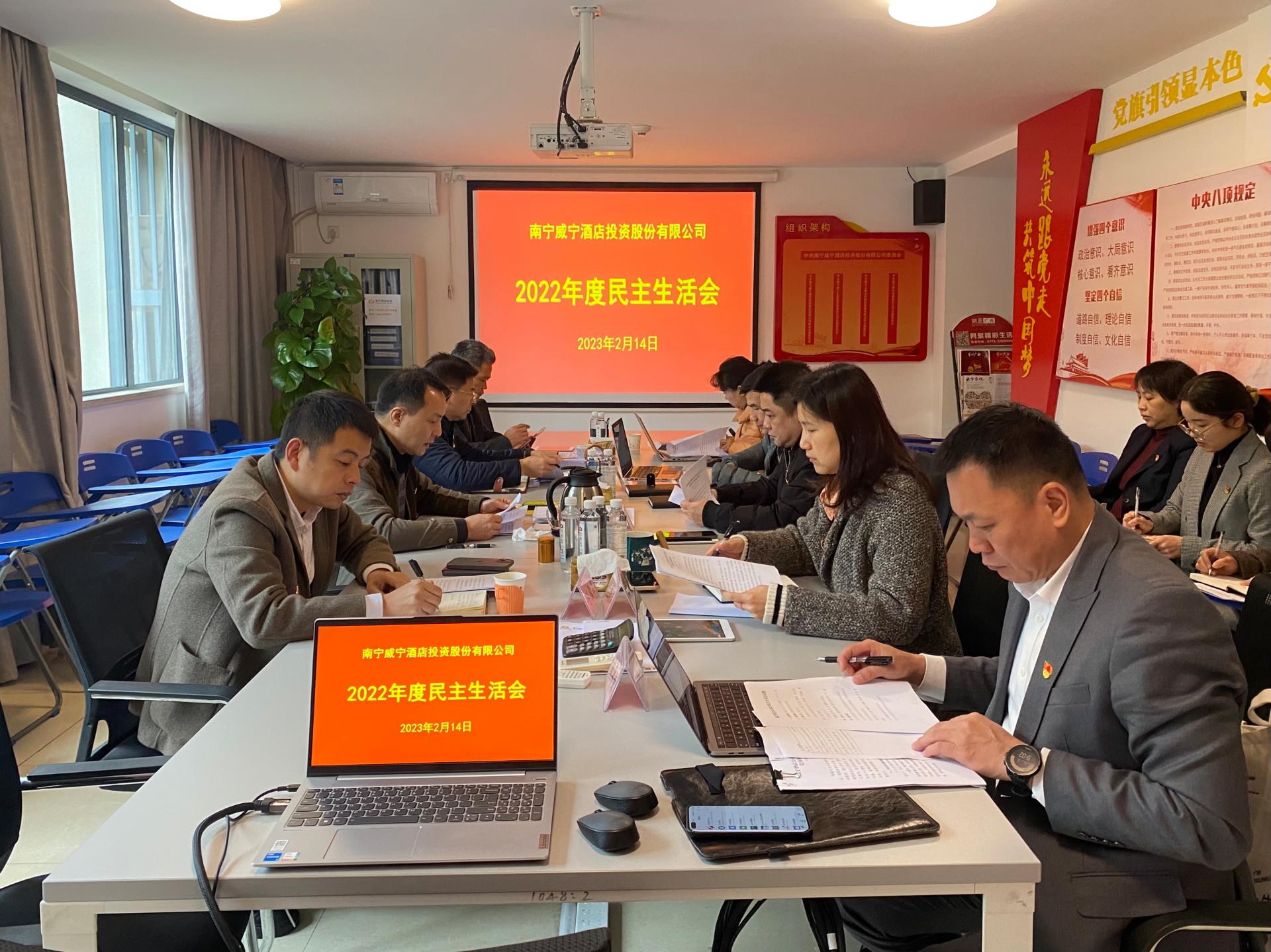 2月14日上午,按照南宁市委组织部的通知要求和集团党委的统一部署,C7(中国)酒店公司党委召开2022年度党员领导干部民主生活会。会议紧扣主题,对照党的二十大精神和党章党规党纪,从7个方面全面查摆问题、深刻检视分析、制定整改措施,认真开展批评与自我批评。集团党委第八督导组组长、集团副总经理韦义勇同志莅会指导,集团副总经理、酒店公司党委书记朱海主持会议。酒店公司党委对开好这次民主生活会高度重视,专题部署安排。会...