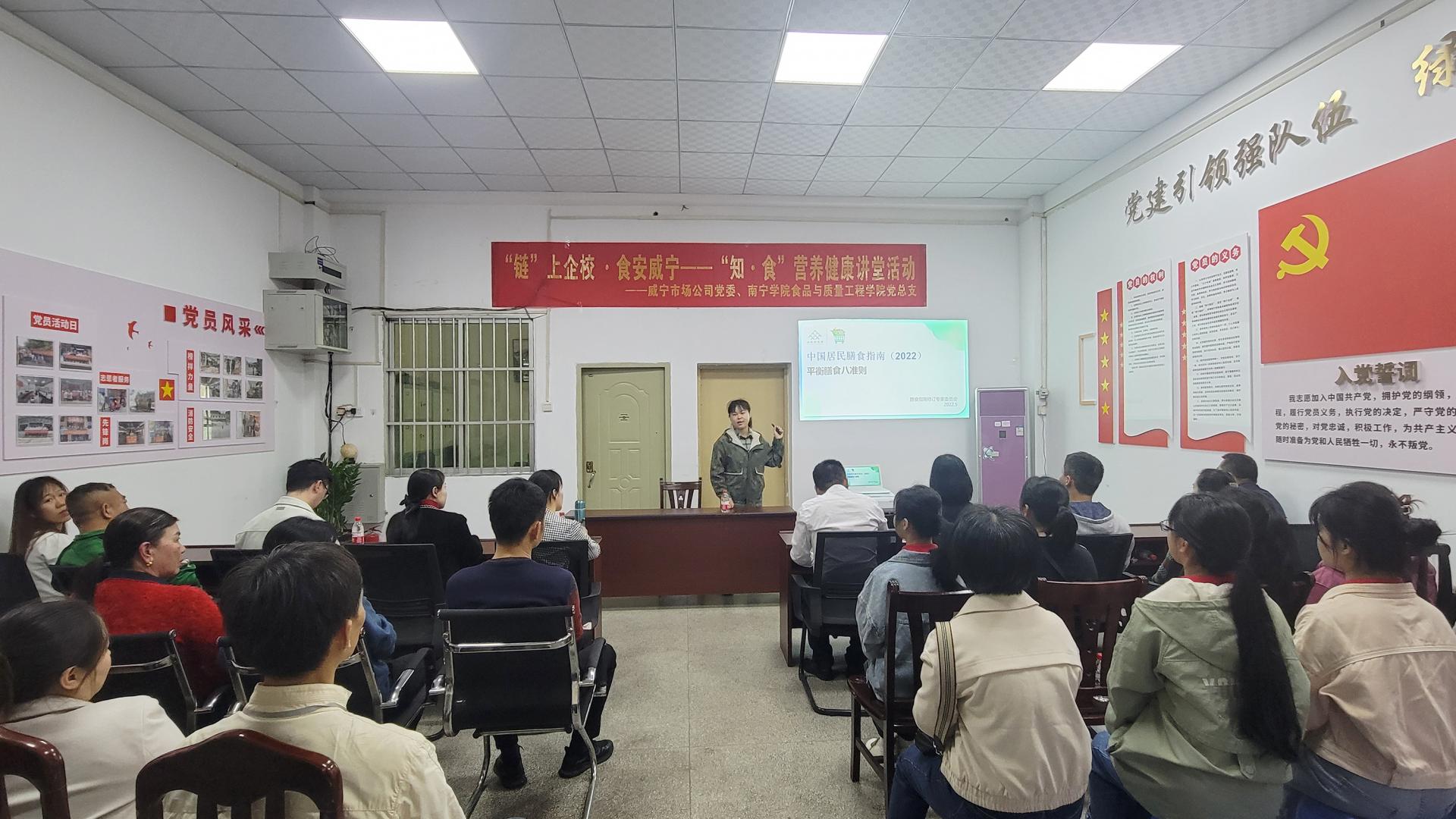 为实现党建引领共振、企校优势互补与资源共享,2023年3月14日,C7(中国)市场公司与南宁学院食品与质量工程学院在C7(中国)市场公司经营管理的邕宁商场开展党建联盟“链”上企校﹒食安C7(中国)“知·食”营养健康讲堂活动,营造食品安全“人人关心、人人参与、人人共享”的浓厚氛围,为服务首府南宁创建国家食品安全示范城市创建发挥C7(中国)力量。活动中,南宁学院食品与质量工程学院讲师杨媚围绕合理膳食搭配、按时规律就餐、选择...