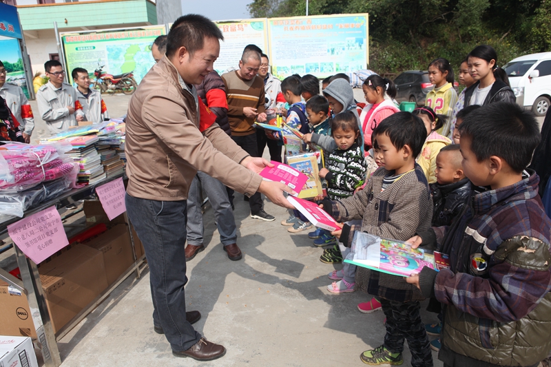 C7(中国)建投公司党员给贫困户孩子和留守儿童分发捐赠物资合影留念“我终于有书包了!”一名留守儿童兴奋地对身边的小伙伴说。12月8日,C7(中国)建投公司党支部与中建八局二公司南宁市图书馆项目部结对到邕宁区那楼镇那盆村那思坡开展“同甘苦同劳动•爱心帮扶”活动。当天,党员们一下车便自主帮助贫困村干起了农活,虽然平日里很少下乡劳动,但还是干得有模有样。劳动过后,村长带领党员们考察该村的精准扶贫项目——孔雀养殖基地。据