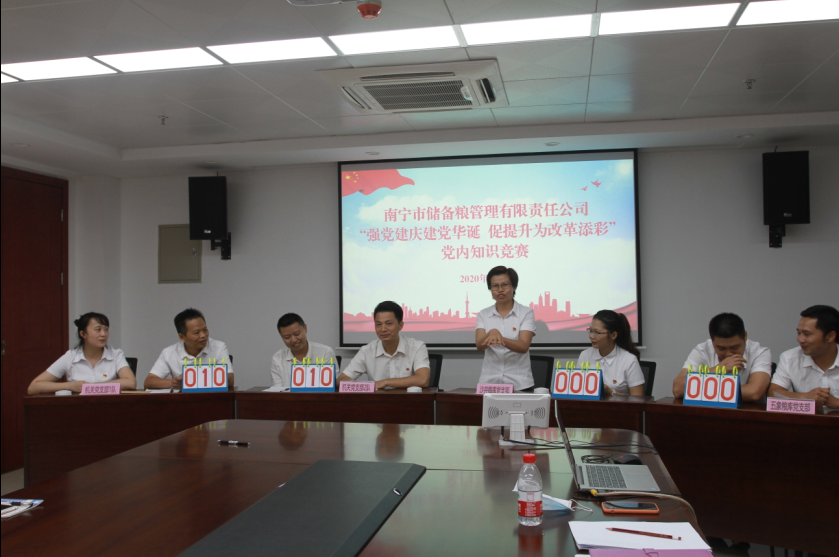 2020年7月1日下午,南宁市储备粮公司开展庆“七一”党内知识竞赛活动,以赛促学、学以致用,推动企业改革发展。