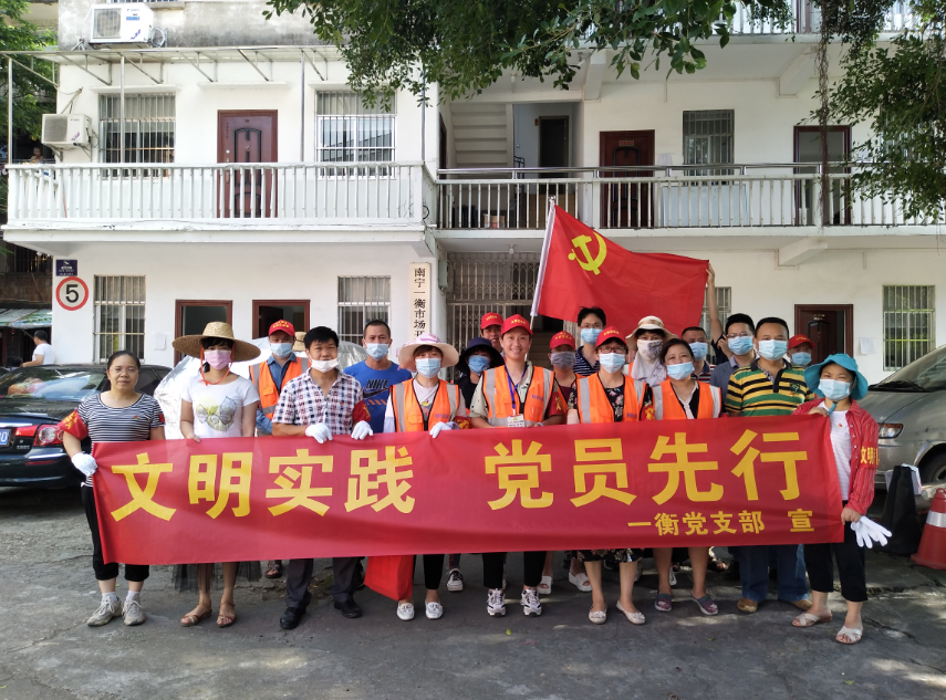 为投身创建全国文明城市,密切在职党员与社区的联系,增强在职党员责任意识、服务意识,给居民营造一个优美洁净的生活环境, 6月25日上午,一衡公司党支部联合衡阳街道南铁北四区社区, 在一衡公司大院开展以“文明实践 党员先行”为主题的创文明城市环境卫生整治活动。