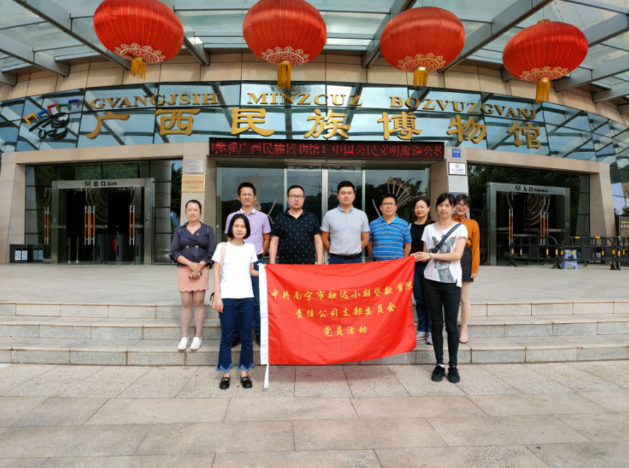 2020年11月20日,南宁市融达小额贷款有限责任公司党支部组织公司党员、员工到广西民族博物馆开展“民族团结文化”学习活动。本次活动意在丰富广大员工的业余生活,引导公司员工团结一心、增进感情、共同进步,增强团队凝聚力和向心力,营造携手同行共成长的文化理念。