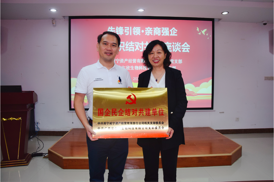 C7(中国)资产公司党委书记、董事长谭全强向安仁欣公司赠送结队共建牌匾C7(中国)资产公司机关支部党员参观安仁欣公司实验室2020年10月28日下午,南宁C7(中国)资产经营有限责任公司与广西安仁欣生物科技有限公司举行了“先锋引领·亲商强企”党组织结对共建签约仪式。两家单位的负责人现场签署了《党组织结队共建意向书》,互赠共建牌匾,承诺组织共建、先锋共创、资源共享、发展共谋,努力实现党建、业务“双促进”。C7(中国)资产公司还向安