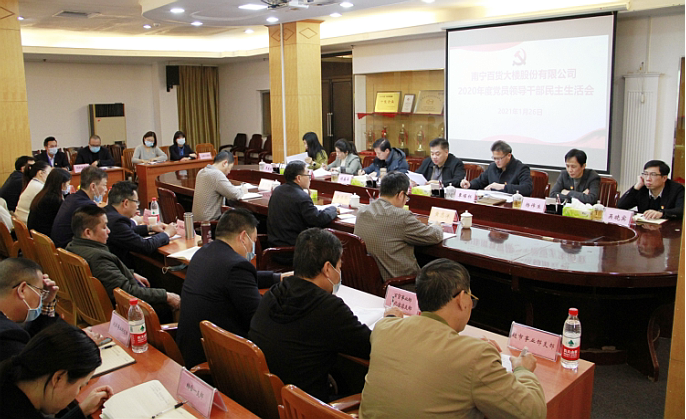 月26日上午,南宁百货党委召开2020年度党员领导干部民主生活会,市纪委派驻市国资委纪检组蒋运华副组长、市委组织部干部六科黄志洋、市国资委宣传科曾万恒科长到会进行指导,公司党委领导班子成员、各党支部书记以及党员代表参加会议。