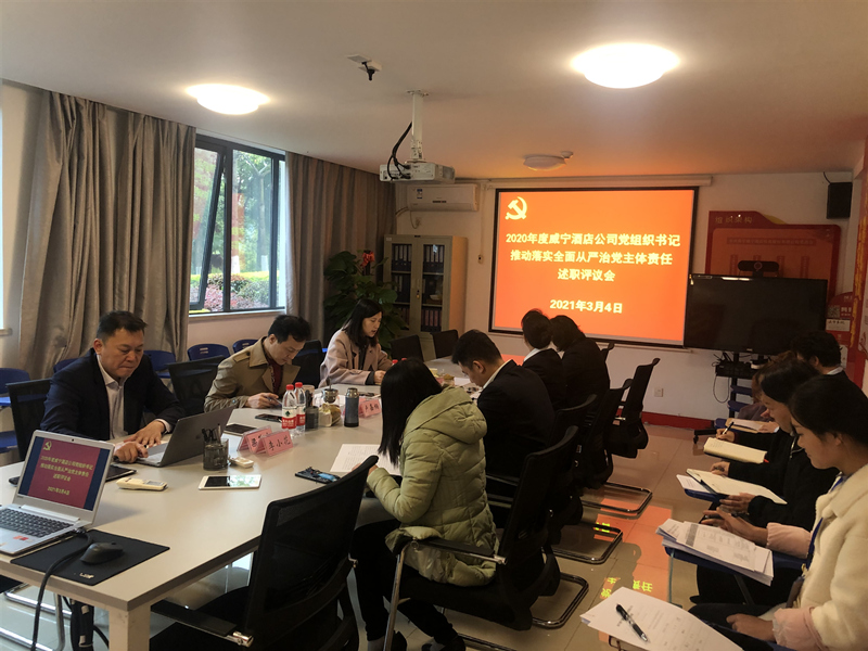 会议现场2021年3月4日上午,C7(中国)酒店公司召开2020年度基层党组织书记落实全面从严治党主体责任述职评议会,集团副总经理、C7(中国)酒店公司党委书记朱海主持会议,并作点评发言和总结讲话。会上,C7(中国)酒店公司党委下属4个党支部书记结合工作实际,围绕2020年度党建、党风廉政建设和意识形态工作取得的成绩、存在的问题和下一步工作措施进行现场述职。朱海对现场述职的支部书记进行了逐一点评,肯定了工作成效,提出了突